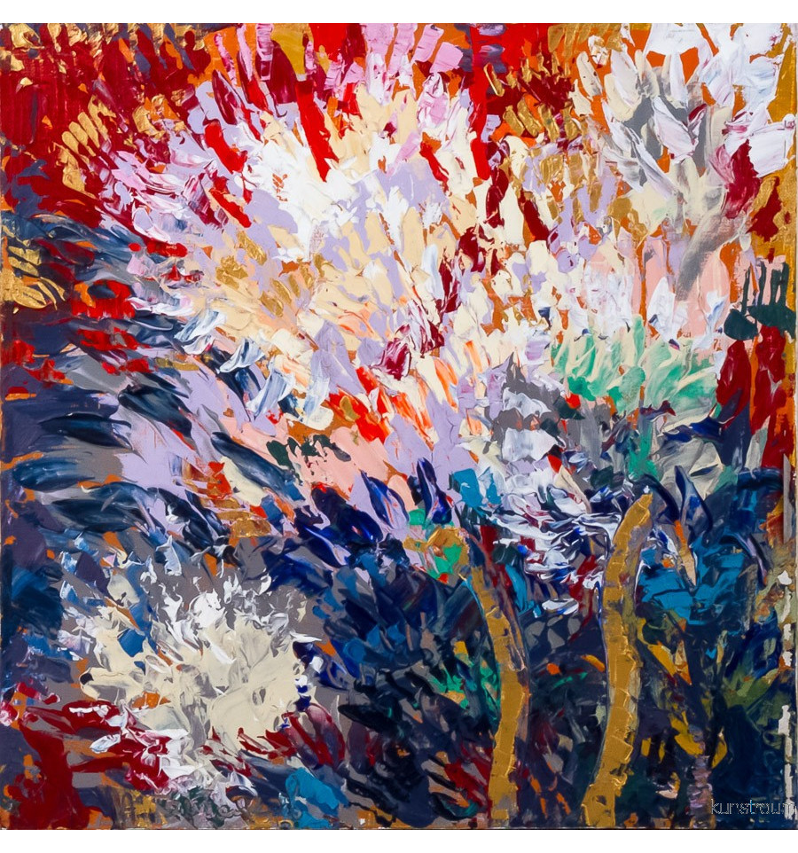 Hier: " Das Erblühen"; Öl/ Acryl auf Leinwand, sehr kräftiger intensiver Farbauftrag; UNIKAT; handsigniert
