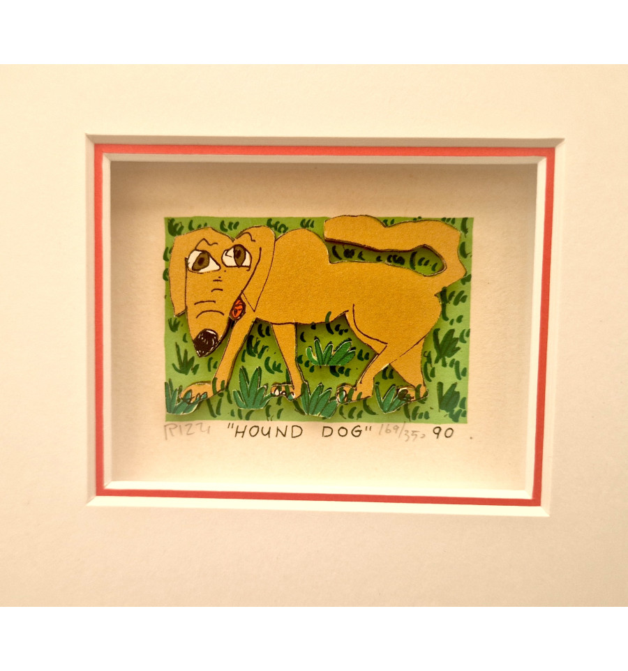 “HOUND DOG " ist eine original 3D-Graphik des Künstlers James Rizzi. Diese limitierte 3D-Arbeit ist HANDSIGNIERT und von Hand nummeriert. Die 3D-Graphik wird mit dem typischen Rizzi-Doppelpassepartout mit farbiger Innenkante und Abstandsleiste im Format 20 x 24 cm und silbermatten ALU- Rahmen von Halbe geliefert.