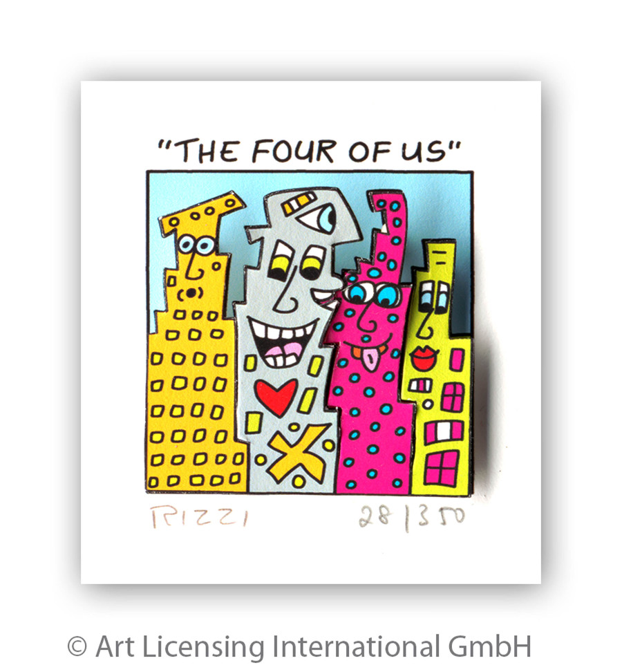 “ The four of us“ ist eine original 3D-Graphik des Künstlers James Rizzi. Diese limitierte 3D-Arbeit ist im Druck signiert und von Hand nummeriert.