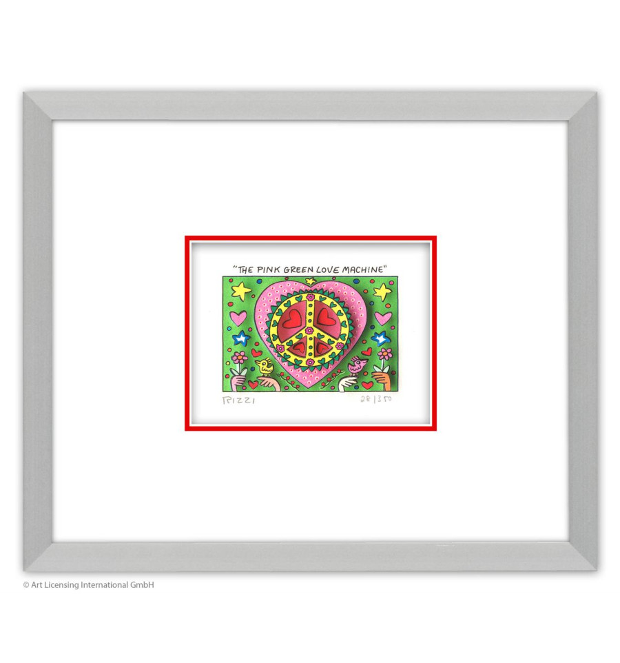 " THE PINK GREEN LOVE MACHINE “ ist eine 3D Grafik des Künstlers James Rizzi. Diese limitierte Arbeit ist im Druck signiert. Um die Echtheit des Werkes zu garantieren ist im Lieferumfang ein Echtheitszertifikat beigefügt,