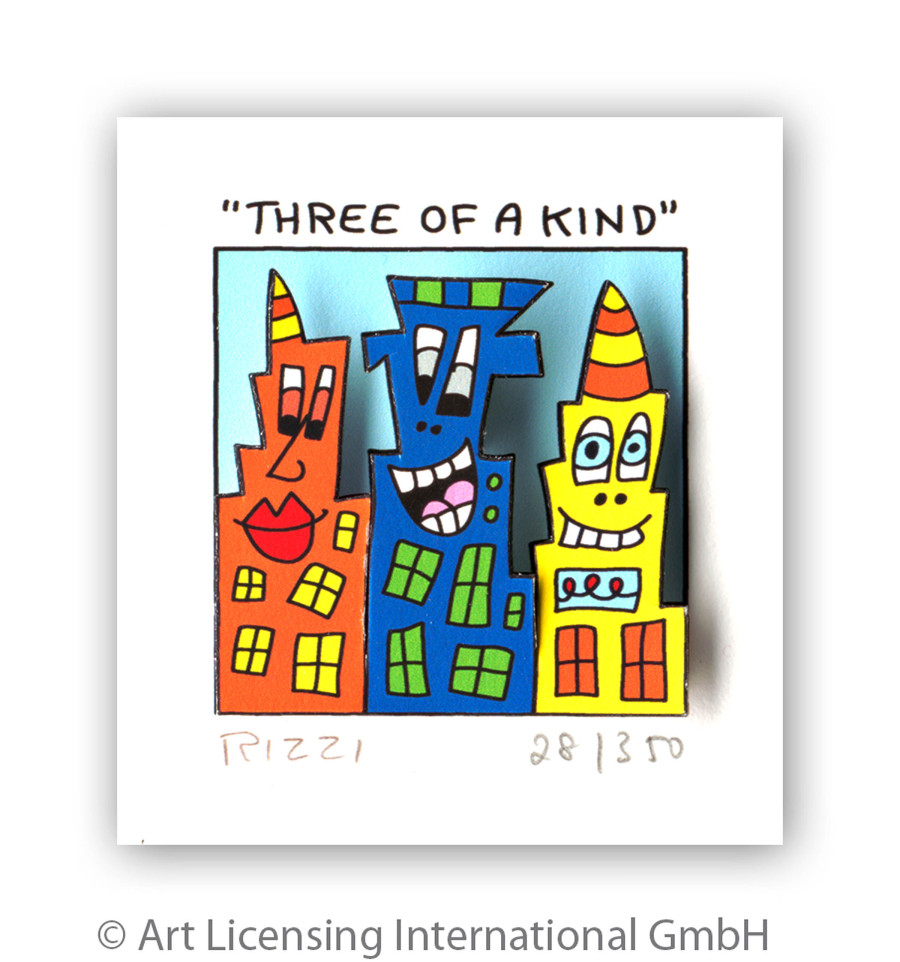“ Three of a kind “ ist eine original 3D-Graphik des Künstlers James Rizzi. Diese limitierte 3D-Arbeit ist im Druck signiert und von Hand nummeriert.