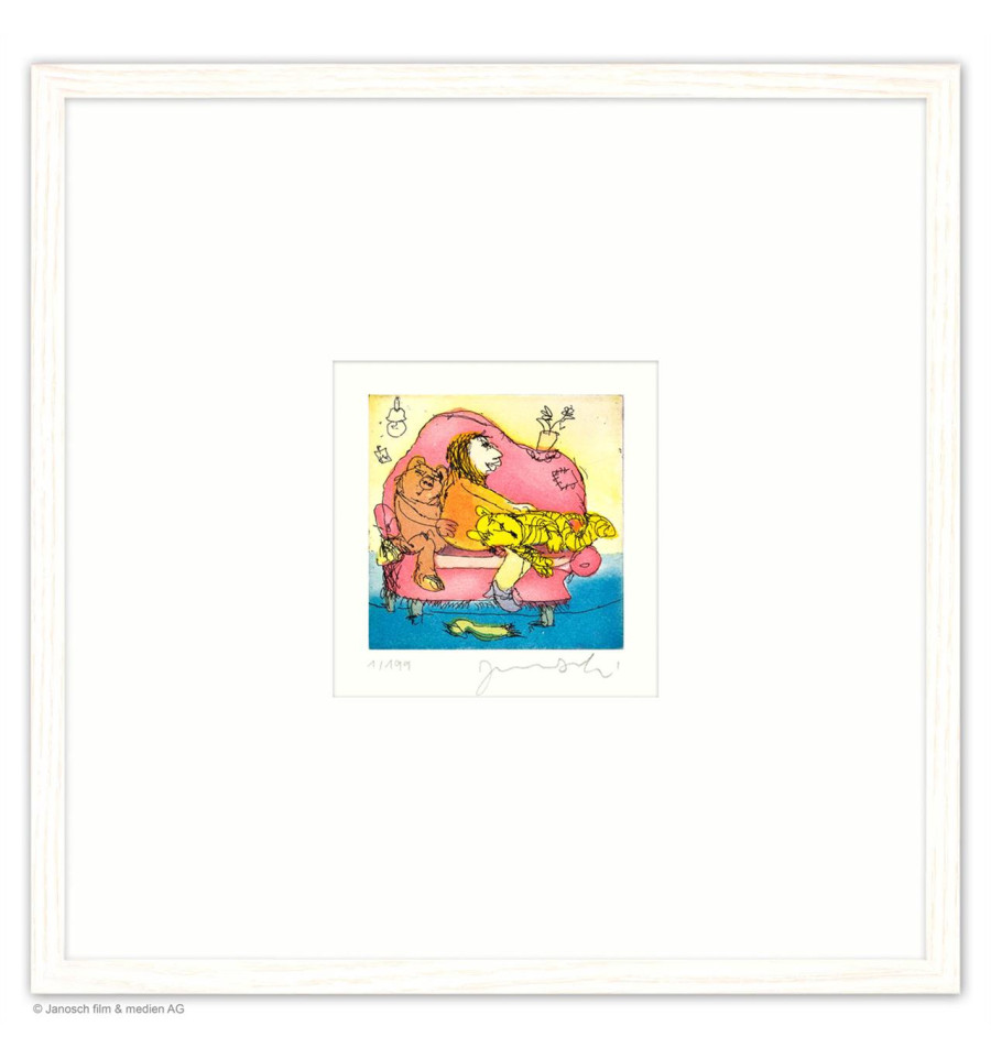 Original Farbradierung; limitiert, handsigniert und nummeriert, incl. Passepartout und Halbe- Rahmen in Esche hell.